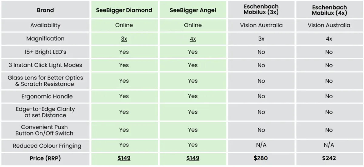 SeeBigger™ magnifiers stand out because we combine high-quality optics with innovative features: